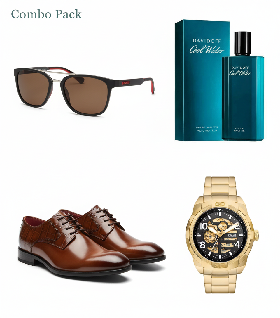 Upgrade your style game with this exclusive combo pack, specially curated for modern gentlemen who love class, confidence, and elegance. Is combo mein aapko milta hai 4 premium items—sabhi apne segment mein top-notch! ---
