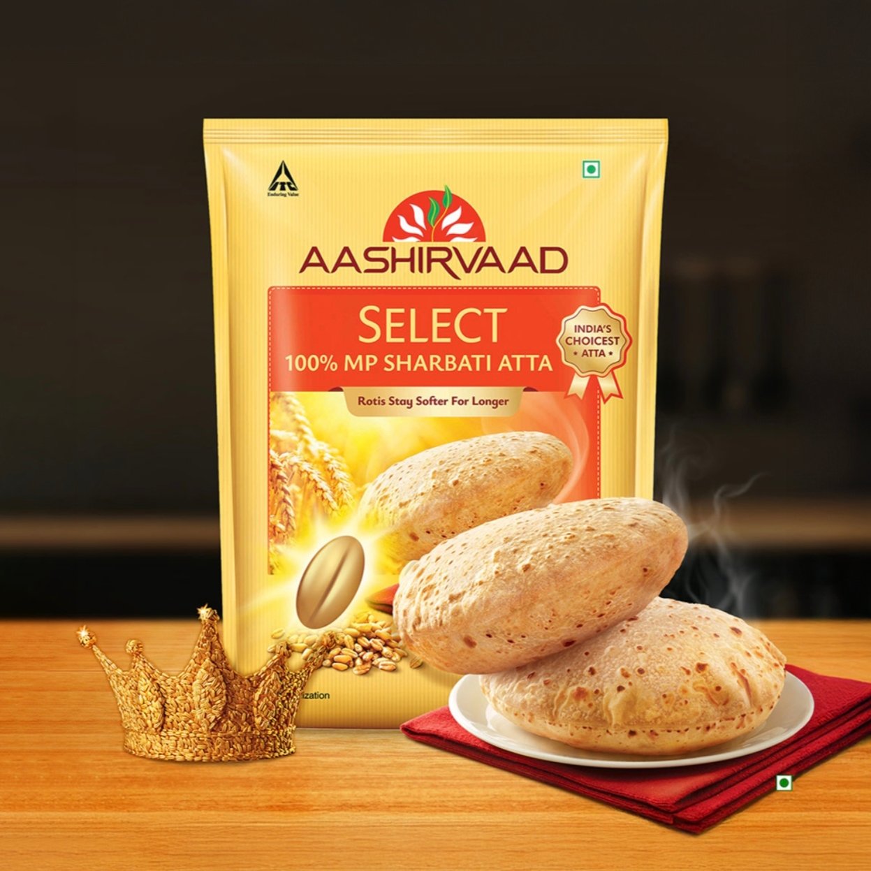 Aashirvaad Select Atta is made from 100% MP Sharbati wheat, carefully sourced from the heart of Madhya Pradesh. Known for its superior grain quality, this atta delivers soft, fluffy rotis that stay soft for longer, making everyday meals healthier and tastier. Processed using advanced milling technology, Aashirvaad Select retains the natural goodness, aroma, and texture of premium wheat, ensuring consistent quality in every pack
