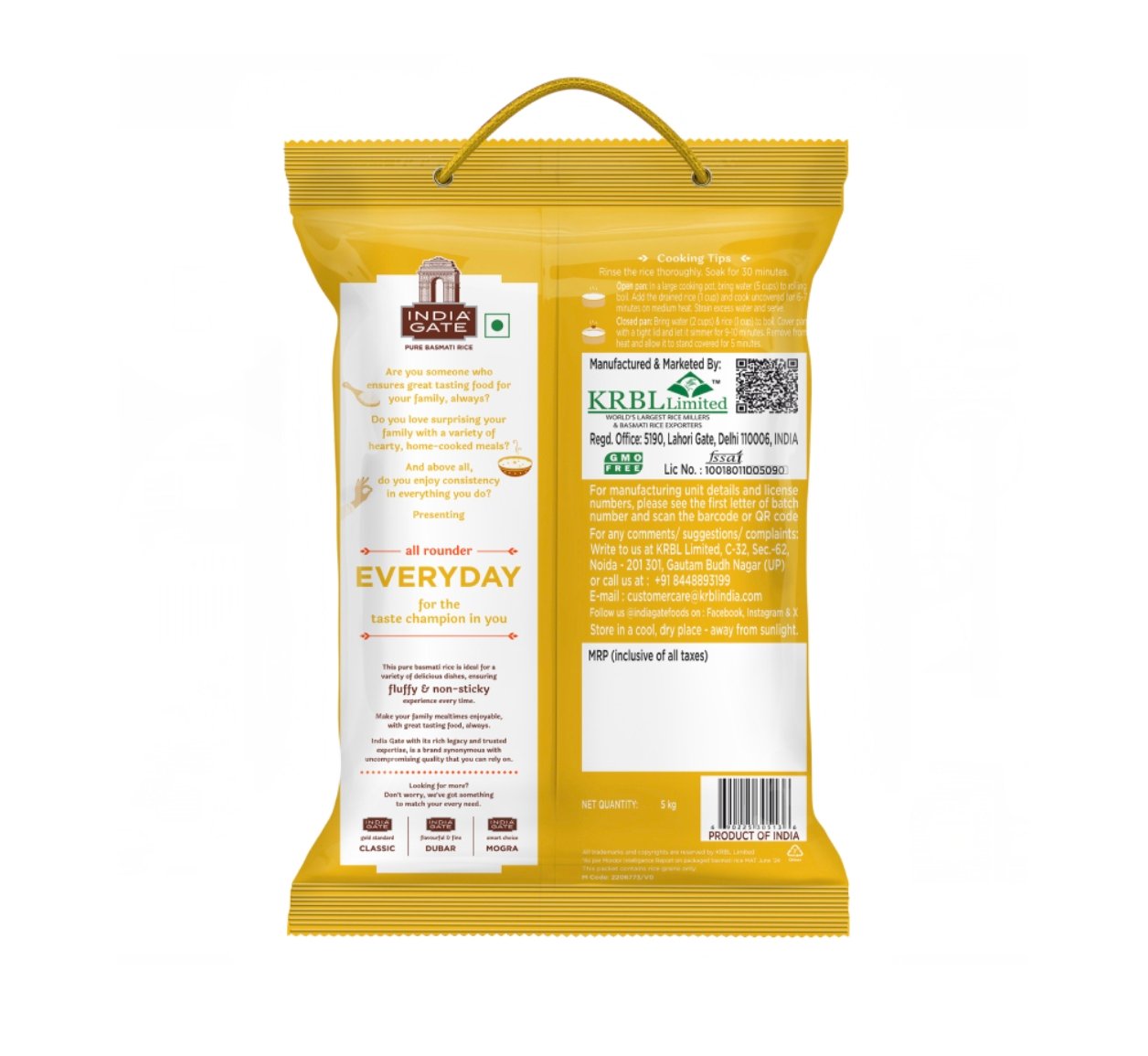 Elevate your daily meals with India Gate Everyday Pure Basmati Rice – the perfect all-rounder for every kitchen. Carefully aged and medium-grain, this rice is fluffy, non-sticky, and easy to cook, making it ideal for everyday cooking.