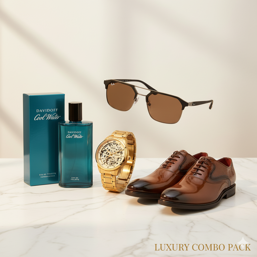 🕶️✨ Premium Men’s Combo Pack – Style, Fragrance & Luxury in One! ✨👞🕰️